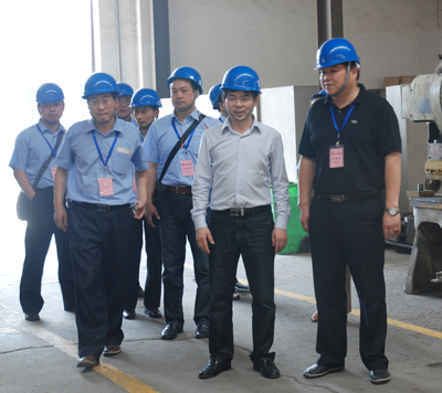 集團(tuán)副總袁立華(右二)陪同蔣總(右一)一行參觀