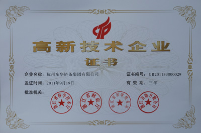 東華集團(tuán)與下屬自強公司于2011年9月分兩批先后根據(jù)《高新技術(shù)企業(yè)認(rèn)定管理辦法》和《高新技術(shù)企業(yè)認(rèn)定管理工作指引》有關(guān)規(guī)定,經(jīng)地方認(rèn)定工作辦公室初審和專家評審等程序,對企業(yè)的經(jīng)營業(yè)績、科研投入比例、高新產(chǎn)品、研發(fā)組織管理水平、核心自主知識產(chǎn)權(quán)、科技成果轉(zhuǎn)化能力及科技人員比例、財務(wù)成長性等指標(biāo)進(jìn)行了全面、嚴(yán)格的考察,東華集團(tuán)和自強公司各項業(yè)績指標(biāo)均達(dá)到國家級“高新技術(shù)企業(yè)”的要求,順利通過審核。2012年4月份正式獲得由浙江省科學(xué)技術(shù)廳、浙江省財政廳、浙江省國家稅務(wù)局、浙江省地方稅務(wù)局聯(lián)合頒發(fā)的國家級“高新技術(shù)企業(yè)”認(rèn)定證書,有效期三年。