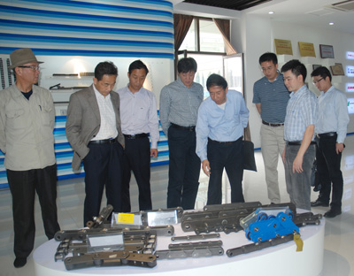 9月23日,浙江省科技咨詢中心副主任陳偉、杭州市科技咨詢中心、杭州市院士專家服務中心主任吳挺等省市區(qū)科學技術(shù)協(xié)會領(lǐng)導陪同寧夏回族自治區(qū)科學技術(shù)協(xié)會副主席王冰等領(lǐng)導到東華集團就院士工作建設(shè)情況及取得的成效進行調(diào)研。圖為副總經(jīng)理袁立華、技術(shù)中心顧問陳金賢陪同陳主任一行參觀樣品。