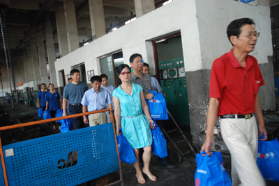 7月22日,江干區(qū)總工會(huì)主席黃建德、筧橋鎮(zhèn)工會(huì)主席王吉龍一行到東華鏈條集團(tuán)向工作在高溫一線的員工送清涼,并送上慰問品。集團(tuán)工會(huì)副主席高文生陪同慰問。