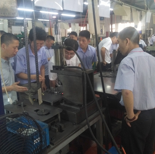 隨后客戶參觀了汽車鏈鏈條裝配車間、鏈板沖制車間等工序。在作業(yè)現(xiàn)場(chǎng)針對(duì)客戶提出的問(wèn)題,接待人員均耐心地為客戶一一解答,客戶對(duì)公司汽車鏈條生產(chǎn)作業(yè)現(xiàn)場(chǎng)的生產(chǎn)能力和質(zhì)量保證能力表示滿意。