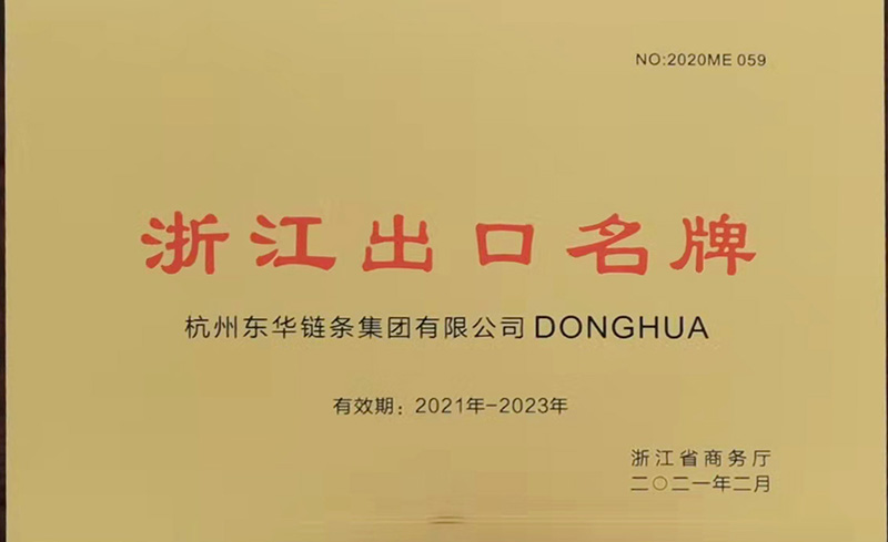 日前,“DONGHUA”品牌被浙江省商務廳繼續認定為“浙江出口名牌”稱號,有效期為2021年至2023年,“DONGHUA”已在100多個國家和地區注冊,這是該品牌連續十年獲此稱號。