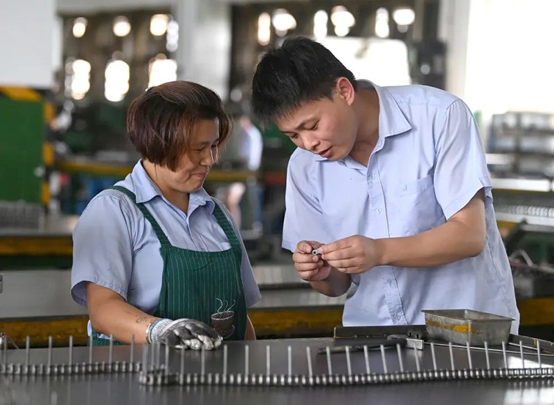 十年前,與所有應屆大學生一樣,最初兩年的黃健一直跟著師傅學技術(shù)。第一個崗位是模具維修,這段經(jīng)歷讓黃健對公司、對生產(chǎn)、對產(chǎn)品有了直觀而更深刻的認識。黃健發(fā)現(xiàn),理論和現(xiàn)實有很大的差距,真正進入崗位后,很多知識不夠用。他在公司遇到幾個好師傅,他說好師傅就是面對他們這些“菜鳥”,會耐心講解、傾囊相授、在關(guān)鍵步驟上指點、會把握方向。跟著師傅日積月累的學習不僅讓黃健的技術(shù)日益精湛,也讓他的思想逐漸成熟。做一名好工匠的想法在他的腦海里悄悄萌芽。他的工作崗位也從模具維修變化到模具加工,再到模具設(shè)計。慢慢地,黃健具備了可以獨立完成一個工裝模具從設(shè)計、加工、安裝、調(diào)試全流程的能力。通過學習提升自己的職業(yè)技能的同時,他也通過學習改變著自己的崗位,模具維修到模具加工再到模具設(shè)計,直至現(xiàn)在成為非標鏈自動裝配設(shè)備設(shè)計開發(fā)項目負責人,實現(xiàn)從機械結(jié)構(gòu)設(shè)計、電路設(shè)計、電氣編程、設(shè)備生產(chǎn)線開發(fā)調(diào)試一體化。