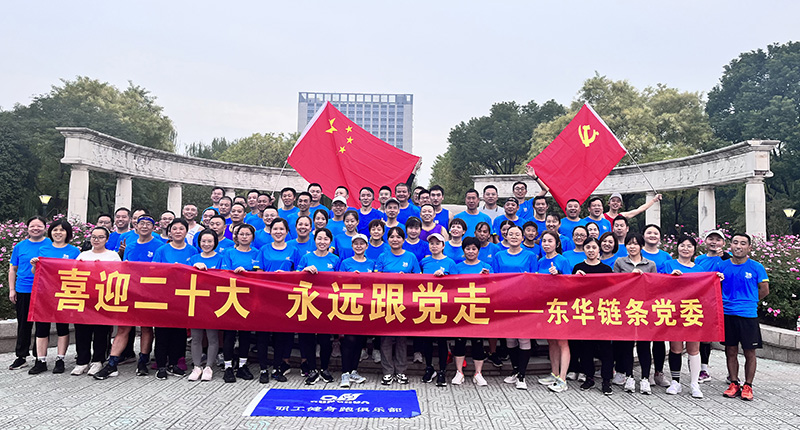 早晨六點,東華鏈條黨委聯(lián)合東華健身跑俱樂部組織黨員及會員開展“喜迎二十大,永遠跟黨走”健身跑活動,80多名員工以健身跑的方式喜迎黨的二十大勝利召開。
