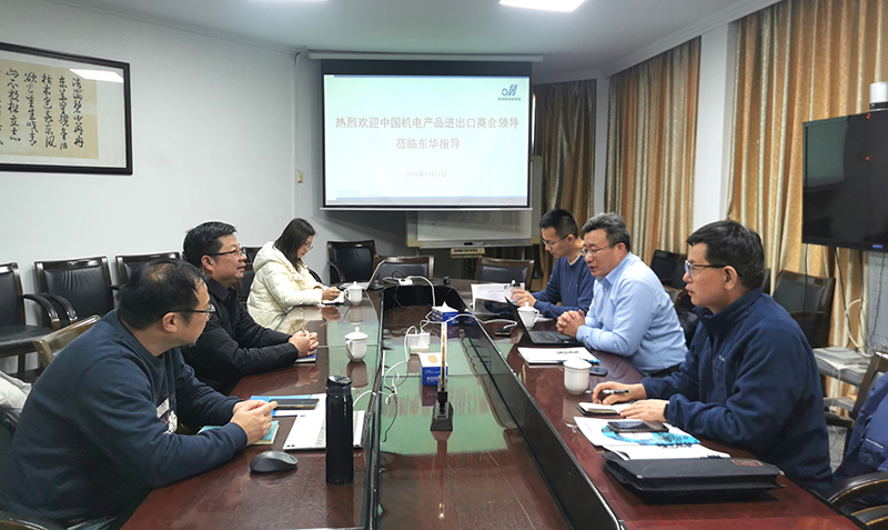 1月10日,中國機電產品進出口商會行業發展部總監、工程農業機械分會秘書長于東科一行到東華調研外貿情況及美國新政府風險影響、公司應對策略等情況。副總經理廖杭州、國際市場部副總經理陳鵬等陪同調研。