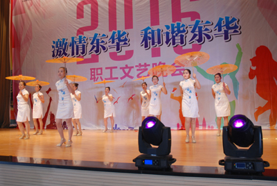 晚會主題為《激情東華,和諧東華》,這是一臺完全由員工自編自導自演的自娛自樂性質的晚會,節目豐富多彩,有獨唱、大合唱、舞蹈、相聲、小品、詩朗誦、戲劇表演等共23個節目,中間穿插了觀眾抽獎等環節。